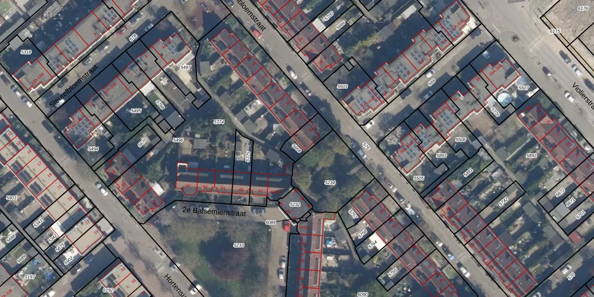 Gebruik de zoekbalk of klik op een perceel om informatie over het perceel te bekijken.