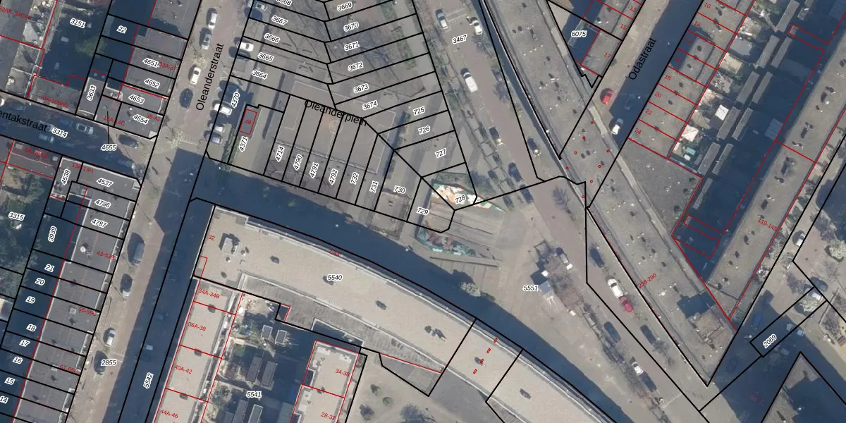 Gebruik de zoekbalk of klik op een perceel om informatie over het perceel te bekijken.