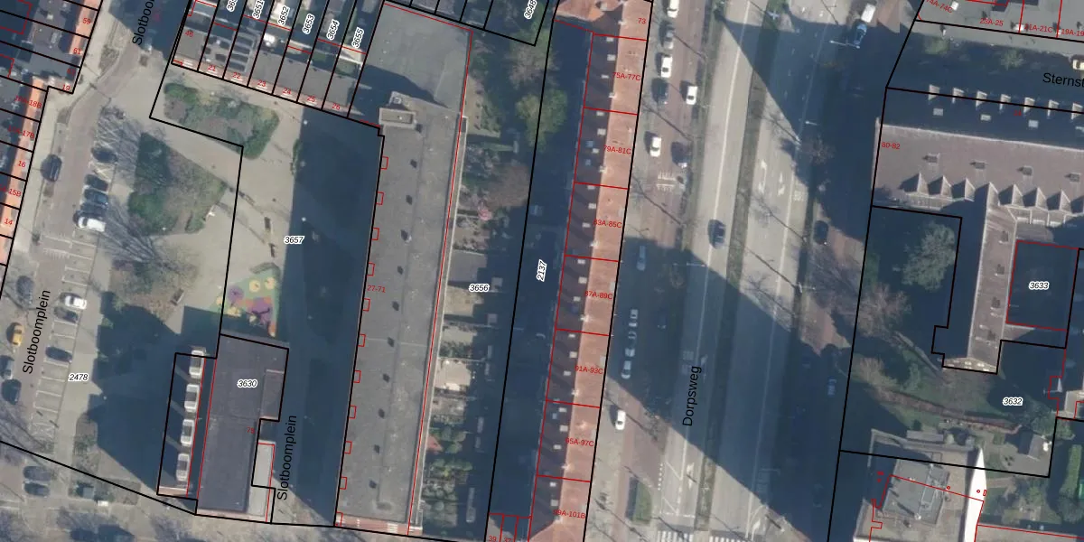 Gebruik de zoekbalk of klik op een perceel om informatie over het perceel te bekijken.