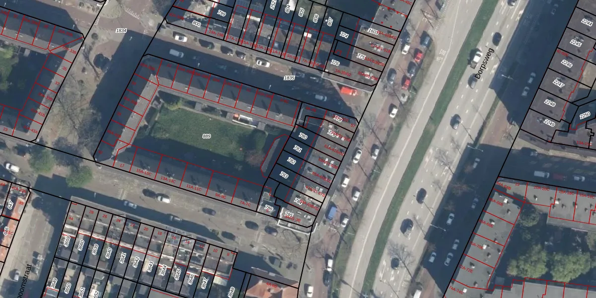 Gebruik de zoekbalk of klik op een perceel om informatie over het perceel te bekijken.