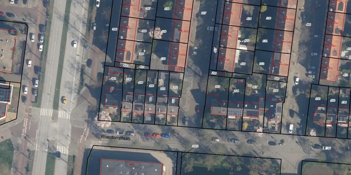 Gebruik de zoekbalk of klik op een perceel om informatie over het perceel te bekijken.