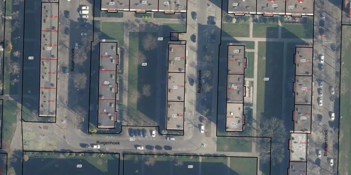 Gebruik de zoekbalk of klik op een perceel om informatie over het perceel te bekijken.