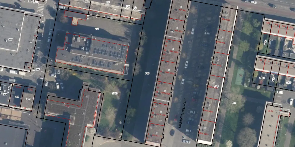 Gebruik de zoekbalk of klik op een perceel om informatie over het perceel te bekijken.