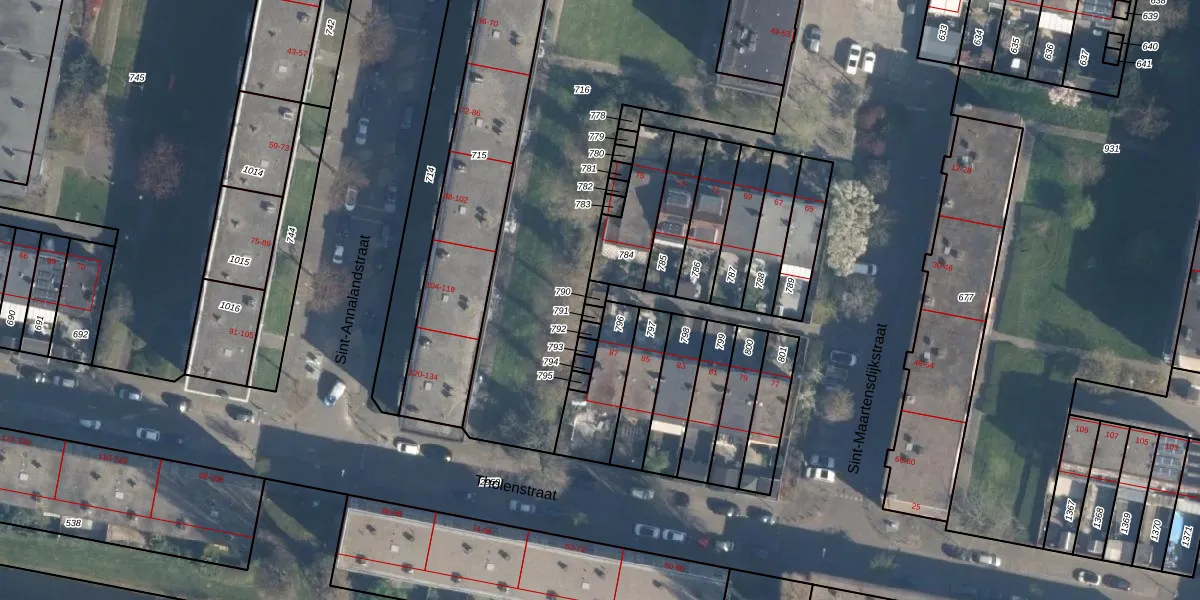 Gebruik de zoekbalk of klik op een perceel om informatie over het perceel te bekijken.