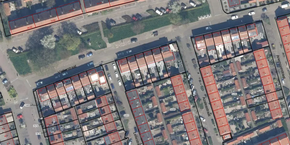 Gebruik de zoekbalk of klik op een perceel om informatie over het perceel te bekijken.