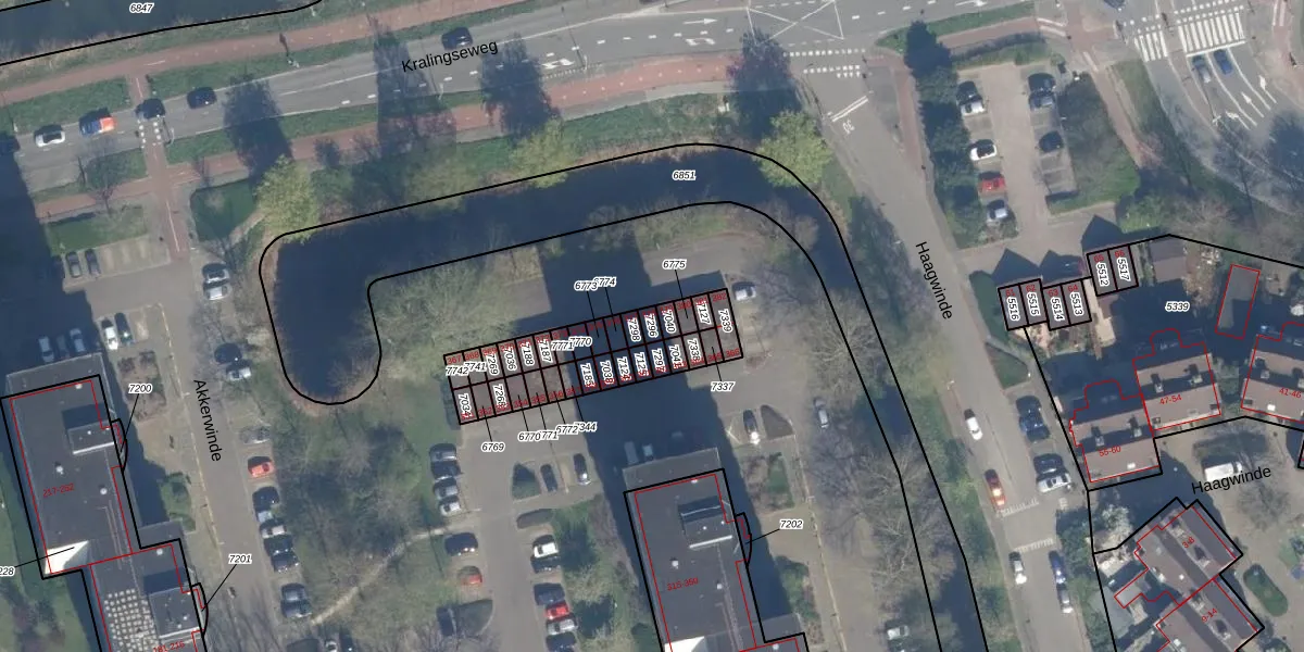 Gebruik de zoekbalk of klik op een perceel om informatie over het perceel te bekijken.