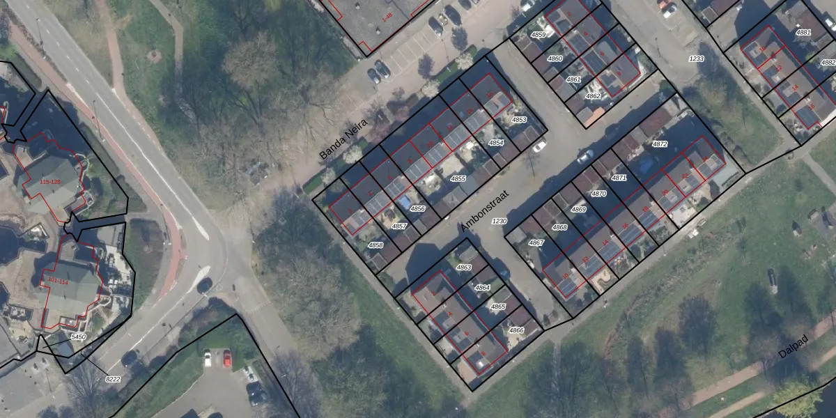Gebruik de zoekbalk of klik op een perceel om informatie over het perceel te bekijken.