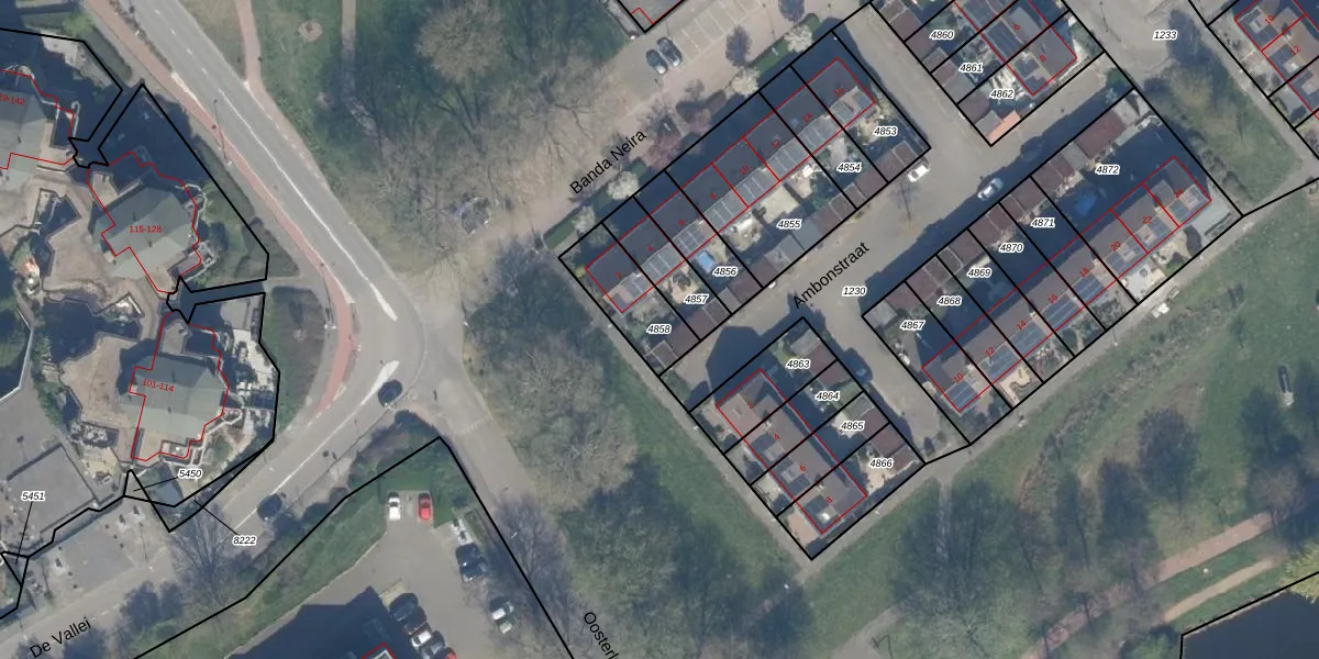 Gebruik de zoekbalk of klik op een perceel om informatie over het perceel te bekijken.