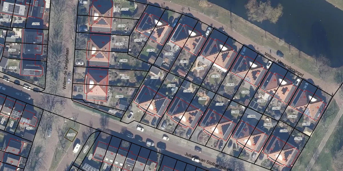 Gebruik de zoekbalk of klik op een perceel om informatie over het perceel te bekijken.