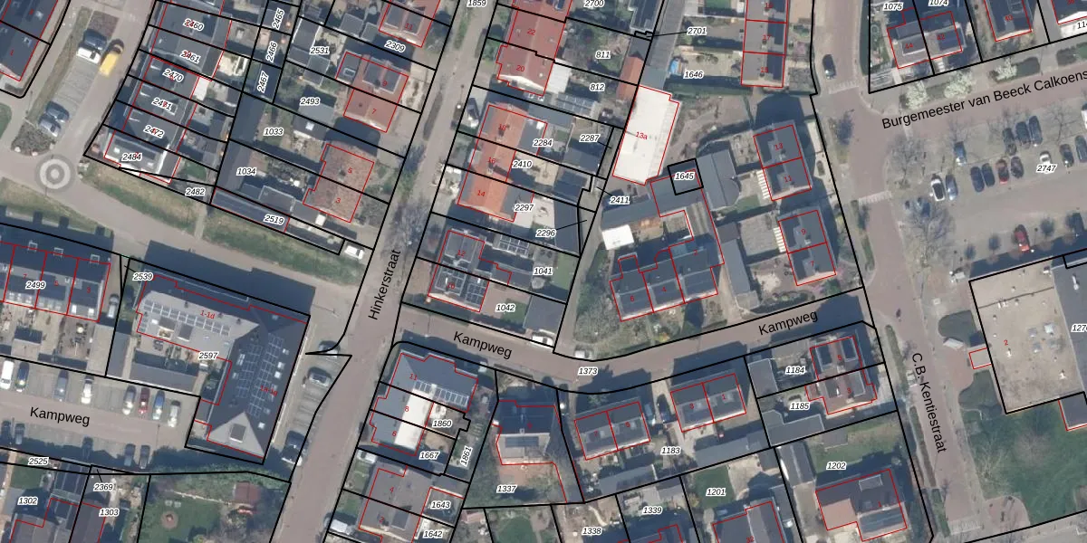 Gebruik de zoekbalk of klik op een perceel om informatie over het perceel te bekijken.