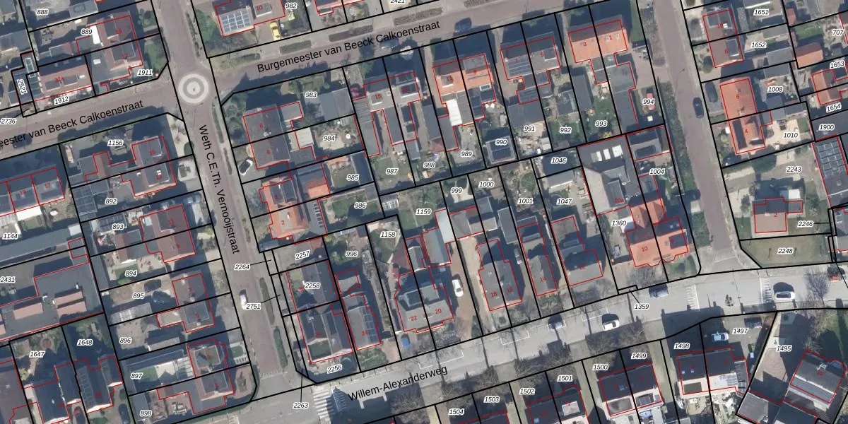 Gebruik de zoekbalk of klik op een perceel om informatie over het perceel te bekijken.