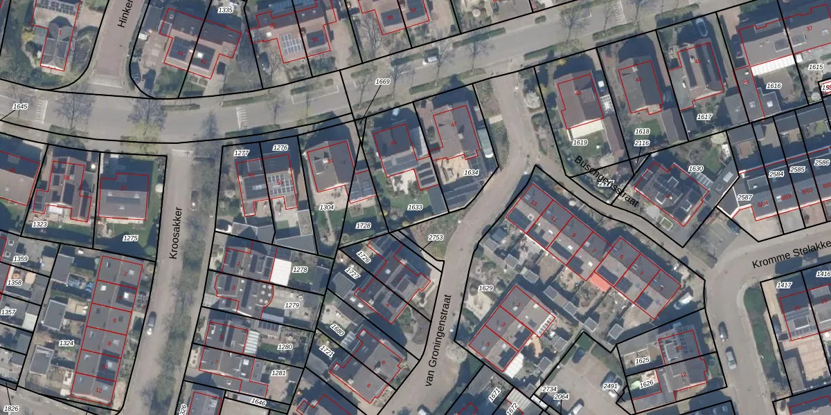 Gebruik de zoekbalk of klik op een perceel om informatie over het perceel te bekijken.