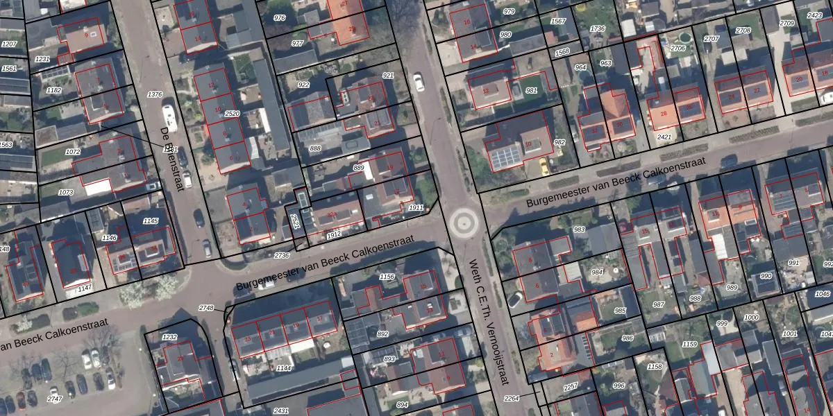 Gebruik de zoekbalk of klik op een perceel om informatie over het perceel te bekijken.