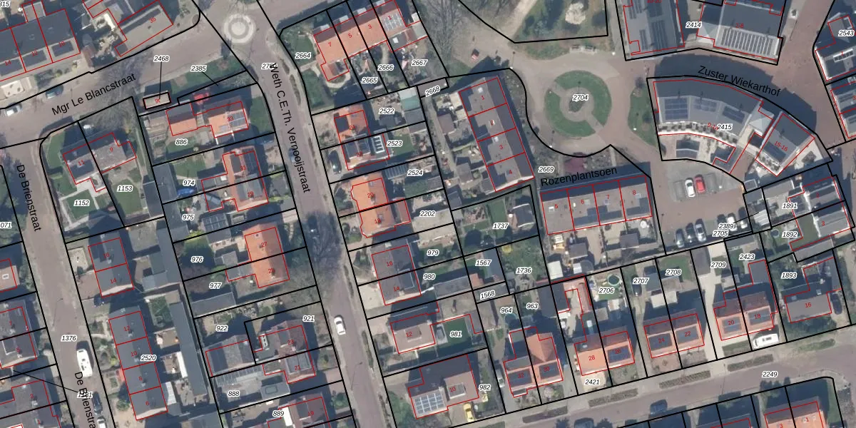 Gebruik de zoekbalk of klik op een perceel om informatie over het perceel te bekijken.