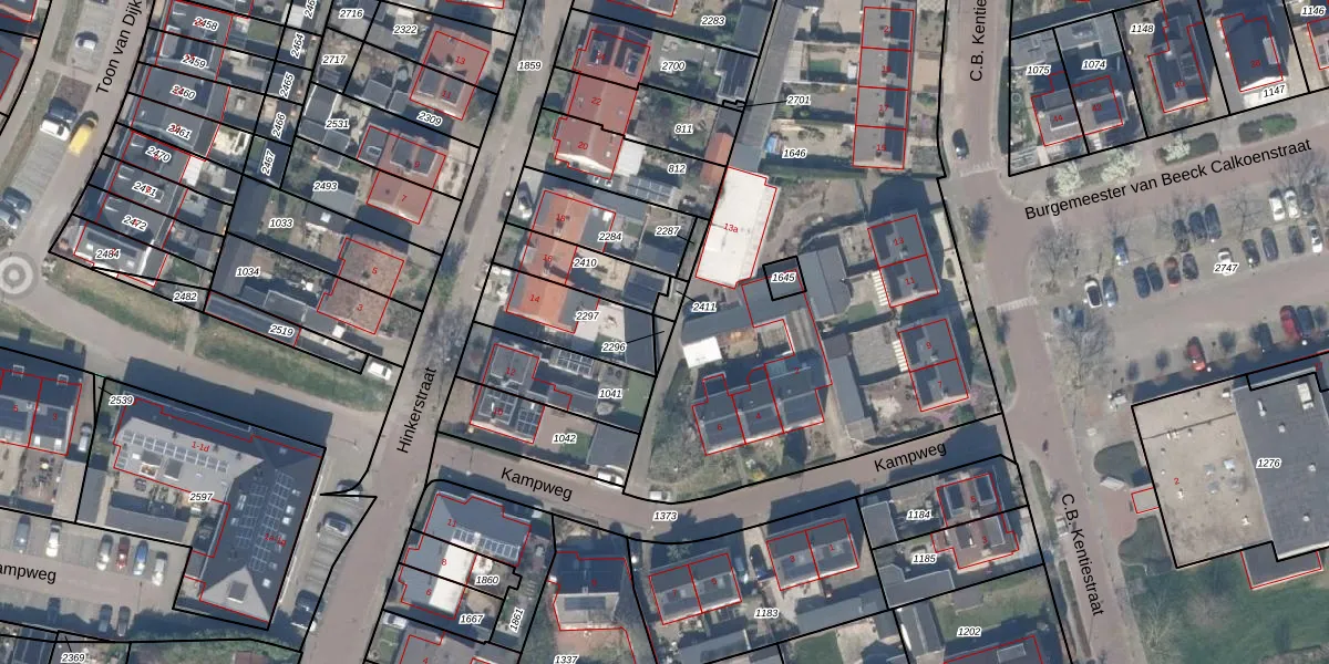 Gebruik de zoekbalk of klik op een perceel om informatie over het perceel te bekijken.