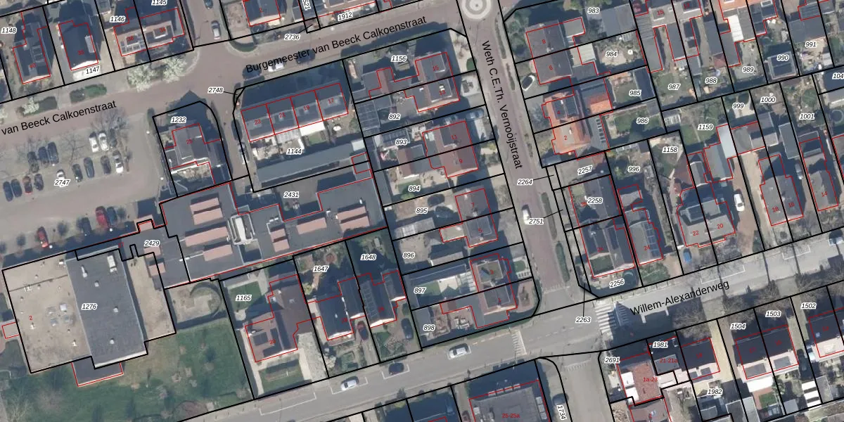 Gebruik de zoekbalk of klik op een perceel om informatie over het perceel te bekijken.