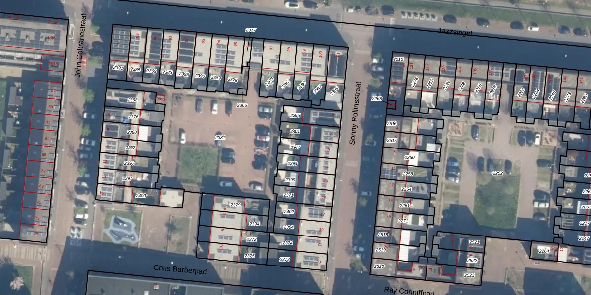 Gebruik de zoekbalk of klik op een perceel om informatie over het perceel te bekijken.