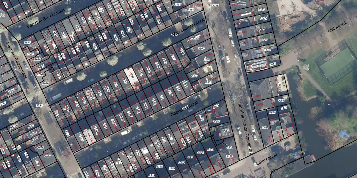 Gebruik de zoekbalk of klik op een perceel om informatie over het perceel te bekijken.