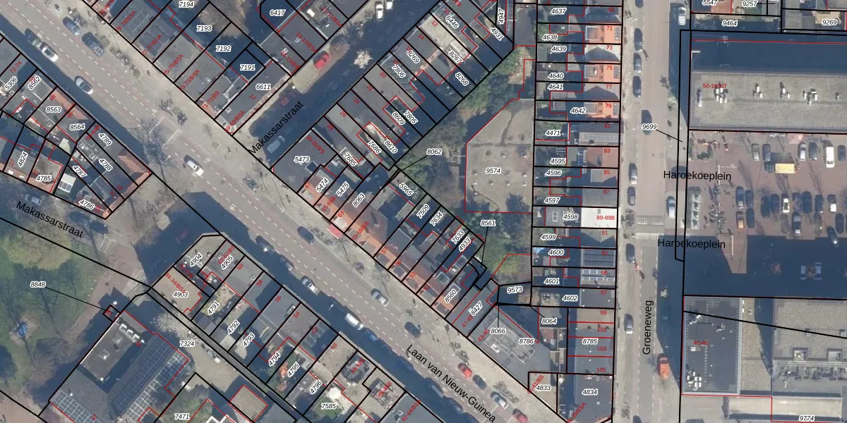 Gebruik de zoekbalk of klik op een perceel om informatie over het perceel te bekijken.