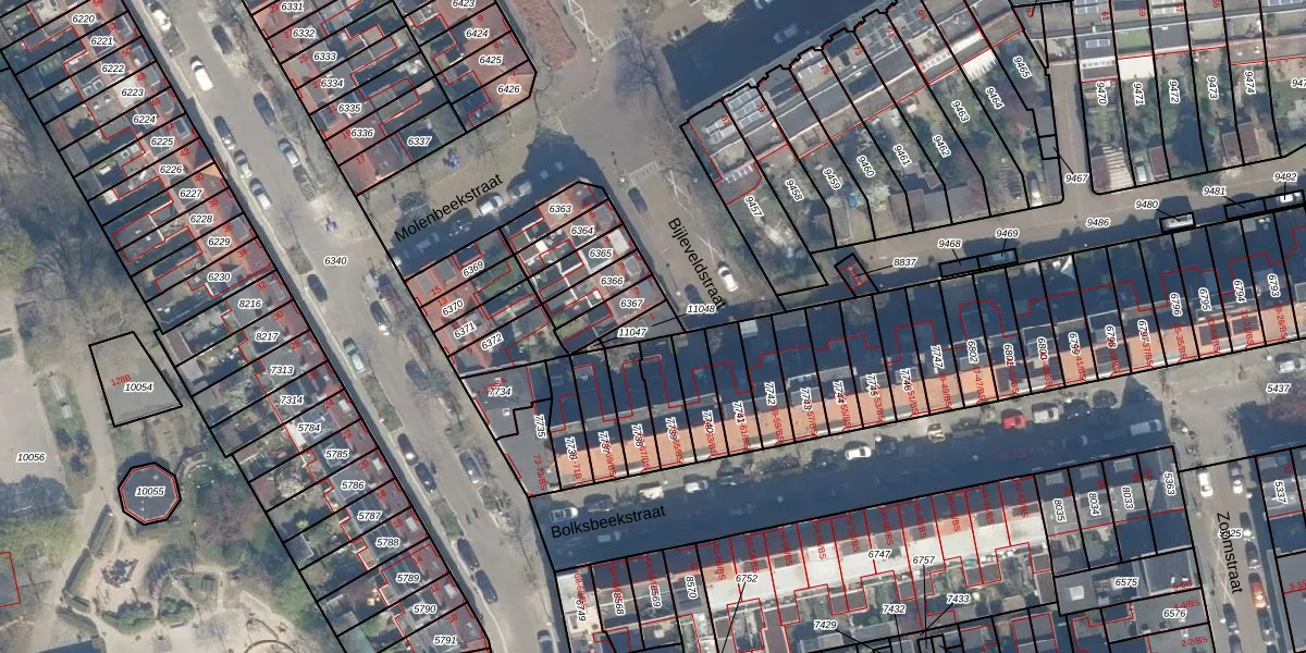 Gebruik de zoekbalk of klik op een perceel om informatie over het perceel te bekijken.