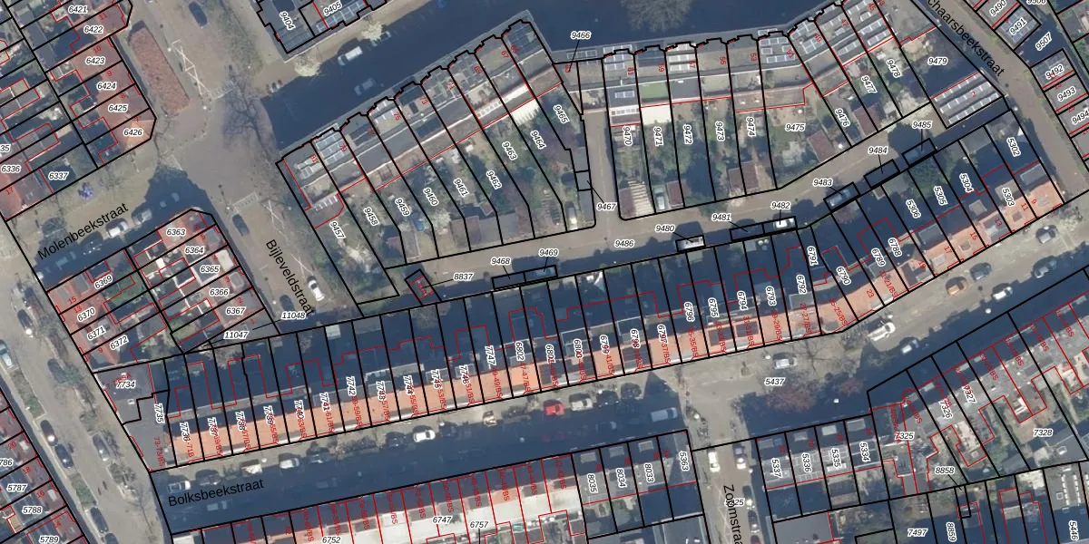Gebruik de zoekbalk of klik op een perceel om informatie over het perceel te bekijken.