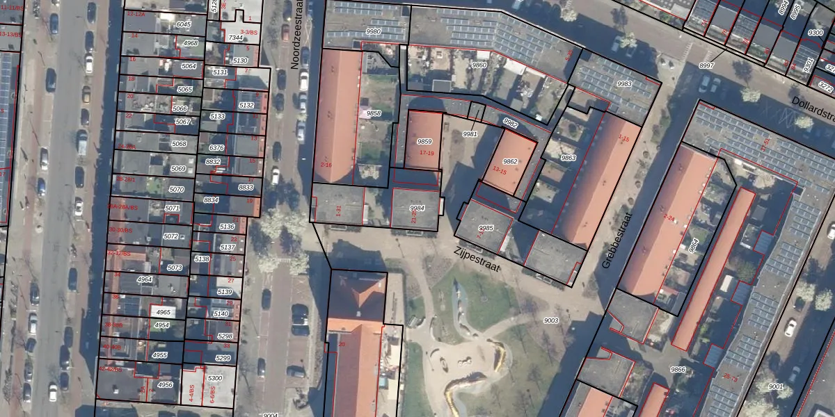 Gebruik de zoekbalk of klik op een perceel om informatie over het perceel te bekijken.
