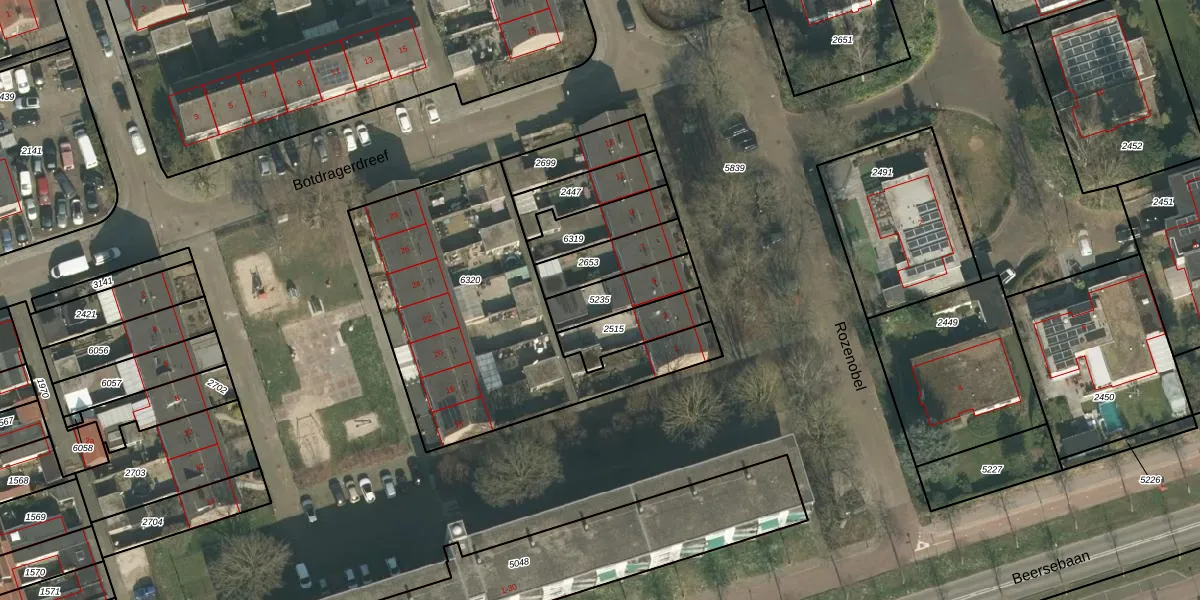 Gebruik de zoekbalk of klik op een perceel om informatie over het perceel te bekijken.