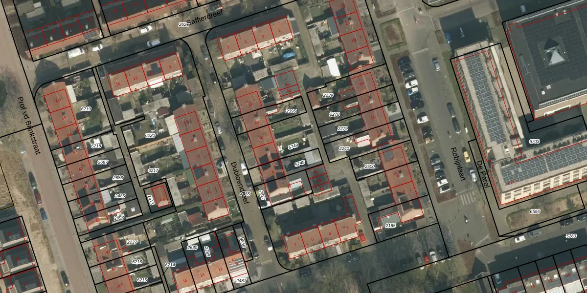 Gebruik de zoekbalk of klik op een perceel om informatie over het perceel te bekijken.