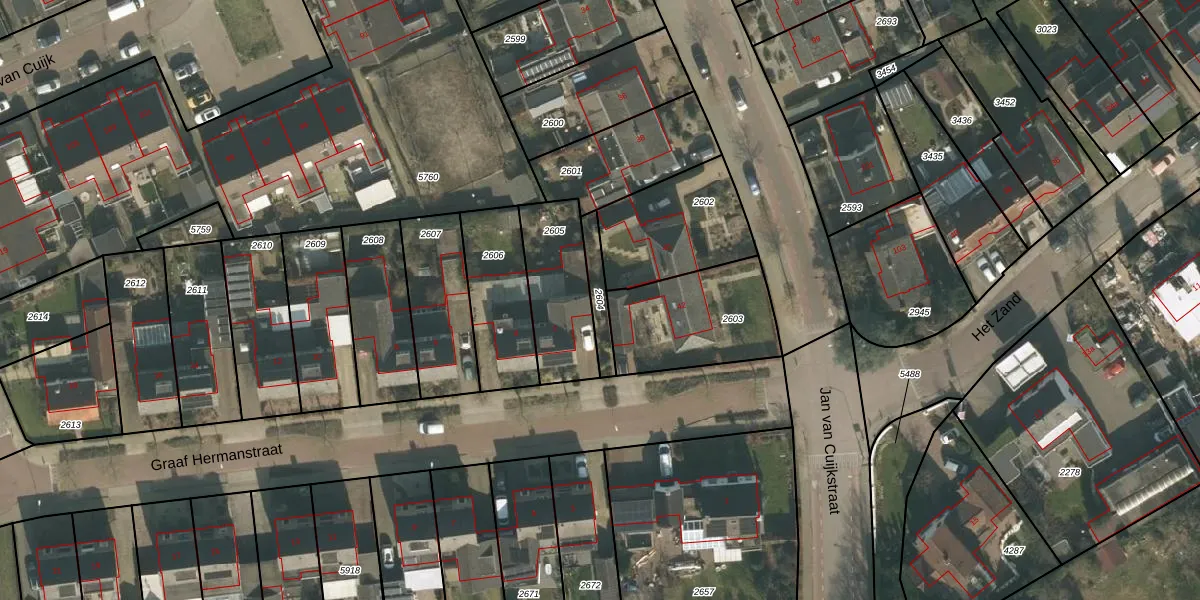 Gebruik de zoekbalk of klik op een perceel om informatie over het perceel te bekijken.