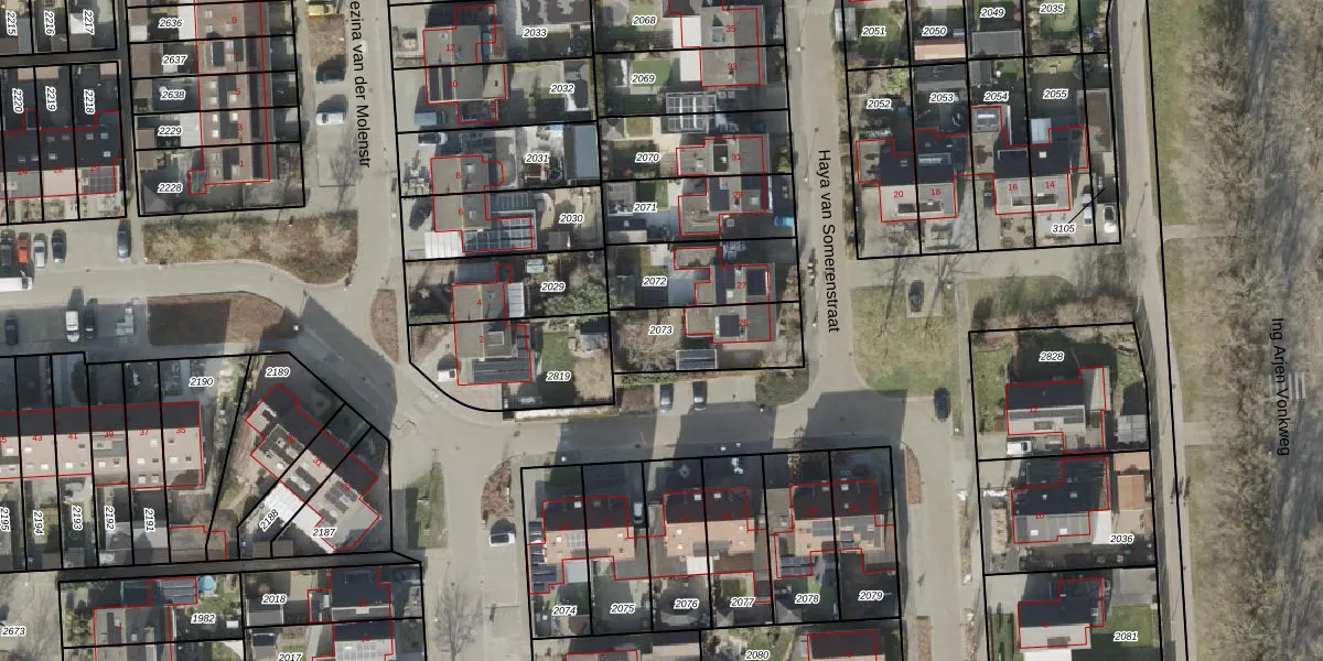 Gebruik de zoekbalk of klik op een perceel om informatie over het perceel te bekijken.