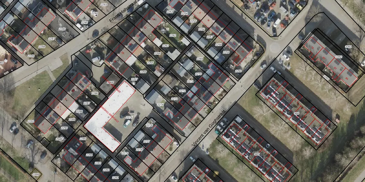 Gebruik de zoekbalk of klik op een perceel om informatie over het perceel te bekijken.