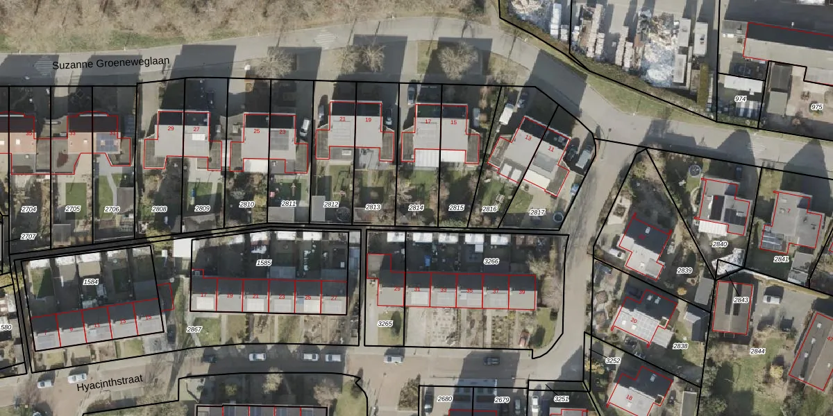 Gebruik de zoekbalk of klik op een perceel om informatie over het perceel te bekijken.