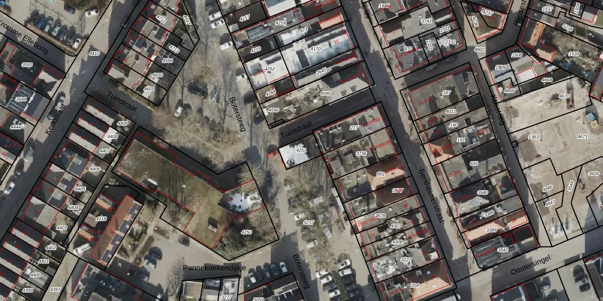 Gebruik de zoekbalk of klik op een perceel om informatie over het perceel te bekijken.