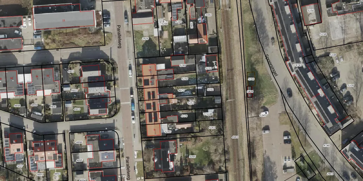 Gebruik de zoekbalk of klik op een perceel om informatie over het perceel te bekijken.