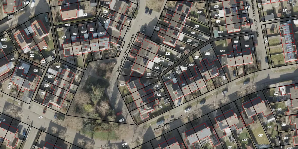 Gebruik de zoekbalk of klik op een perceel om informatie over het perceel te bekijken.