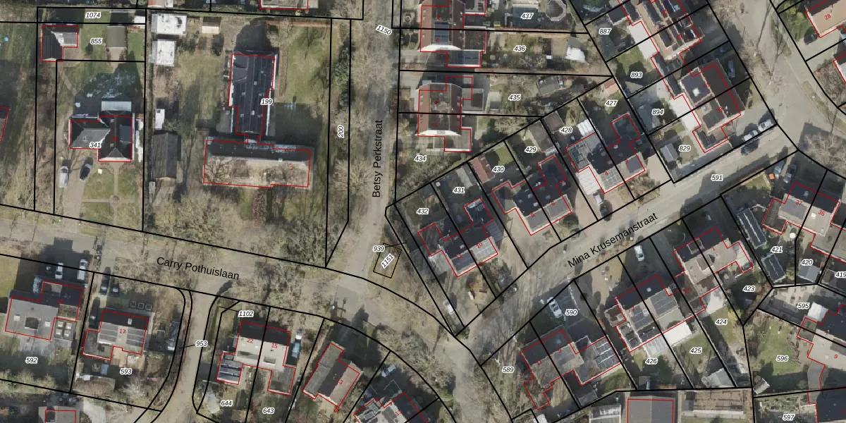 Gebruik de zoekbalk of klik op een perceel om informatie over het perceel te bekijken.