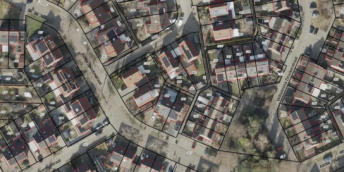 Gebruik de zoekbalk of klik op een perceel om informatie over het perceel te bekijken.