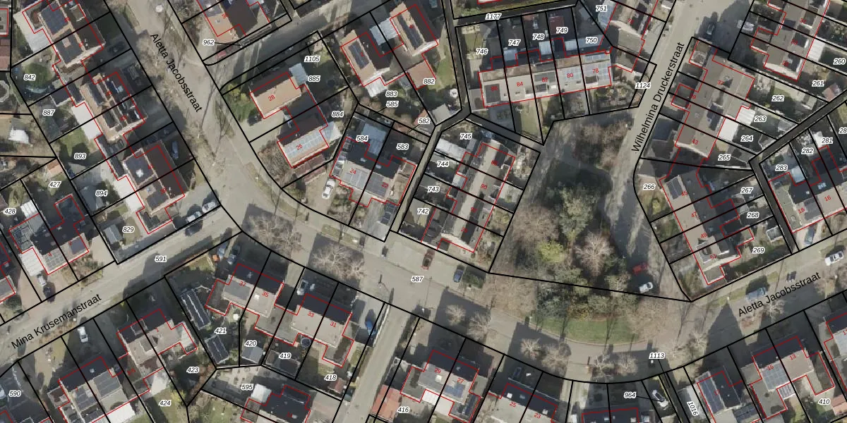 Gebruik de zoekbalk of klik op een perceel om informatie over het perceel te bekijken.