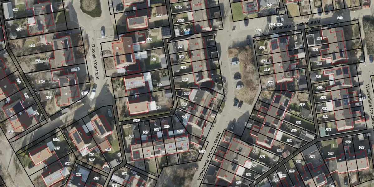 Gebruik de zoekbalk of klik op een perceel om informatie over het perceel te bekijken.
