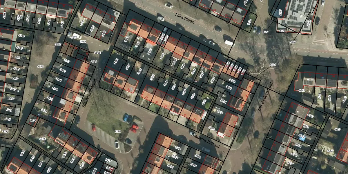 Gebruik de zoekbalk of klik op een perceel om informatie over het perceel te bekijken.