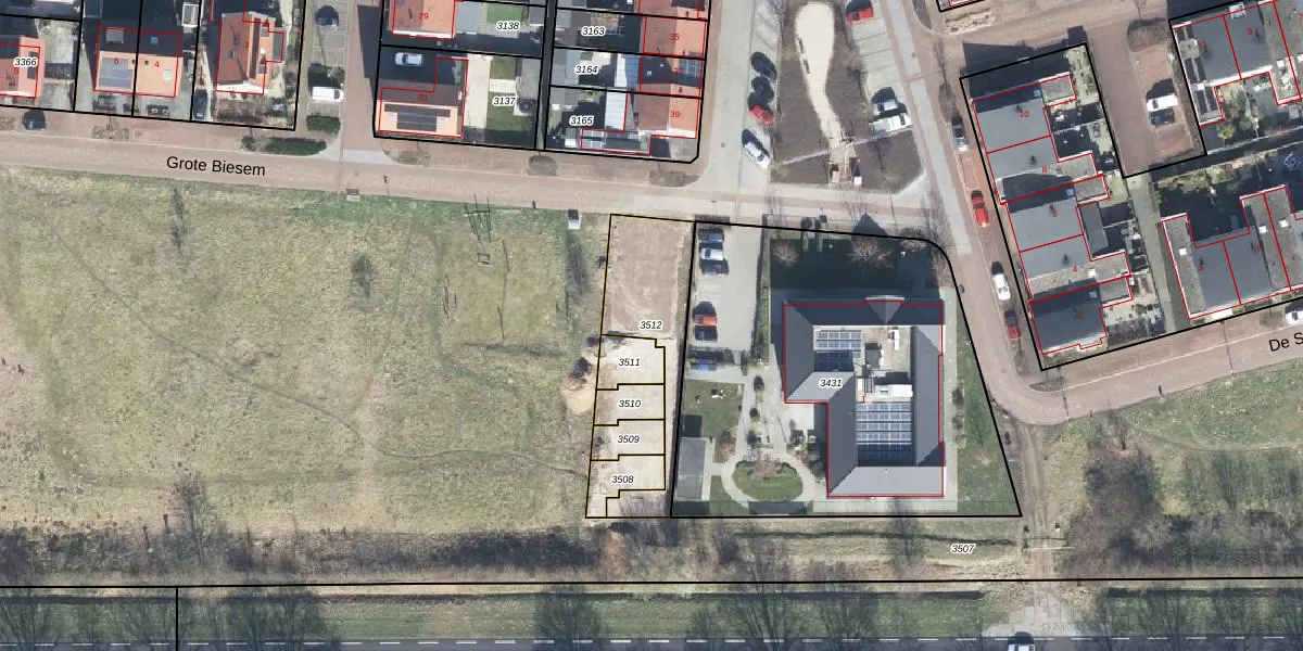 Gebruik de zoekbalk of klik op een perceel om informatie over het perceel te bekijken.
