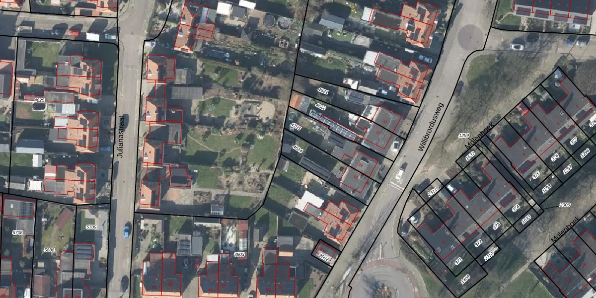 Gebruik de zoekbalk of klik op een perceel om informatie over het perceel te bekijken.
