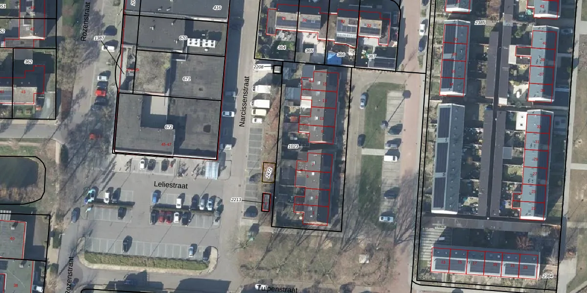 Gebruik de zoekbalk of klik op een perceel om informatie over het perceel te bekijken.