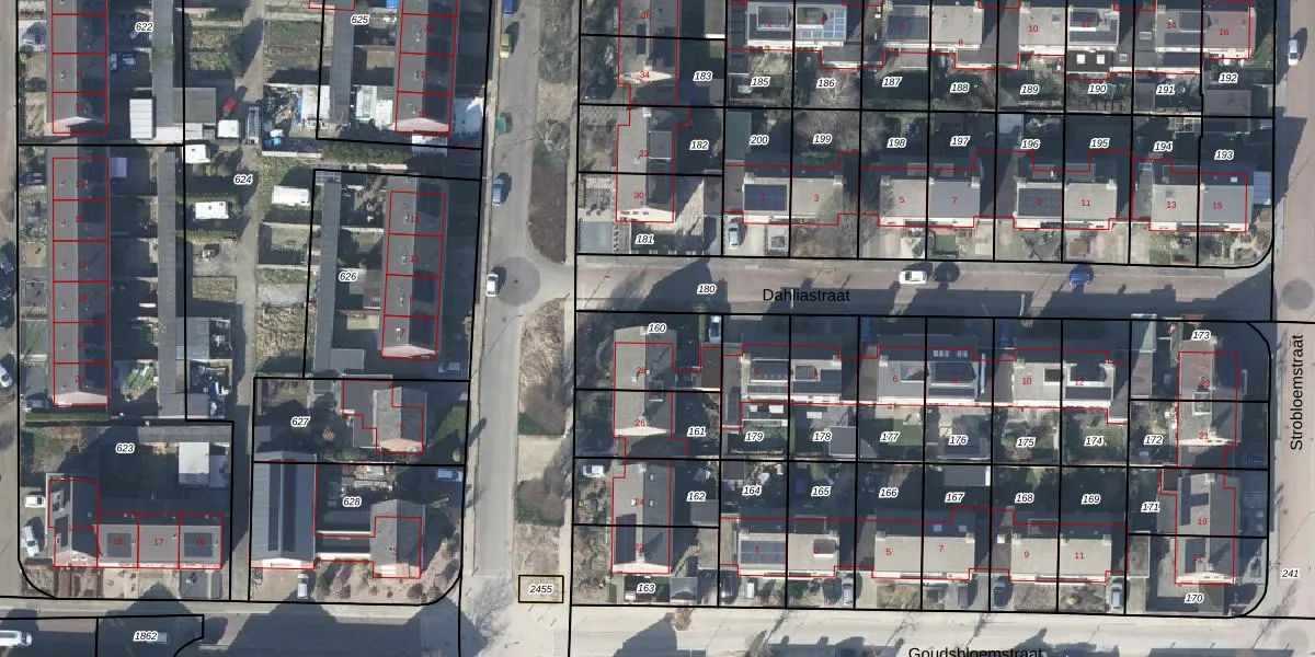 Gebruik de zoekbalk of klik op een perceel om informatie over het perceel te bekijken.