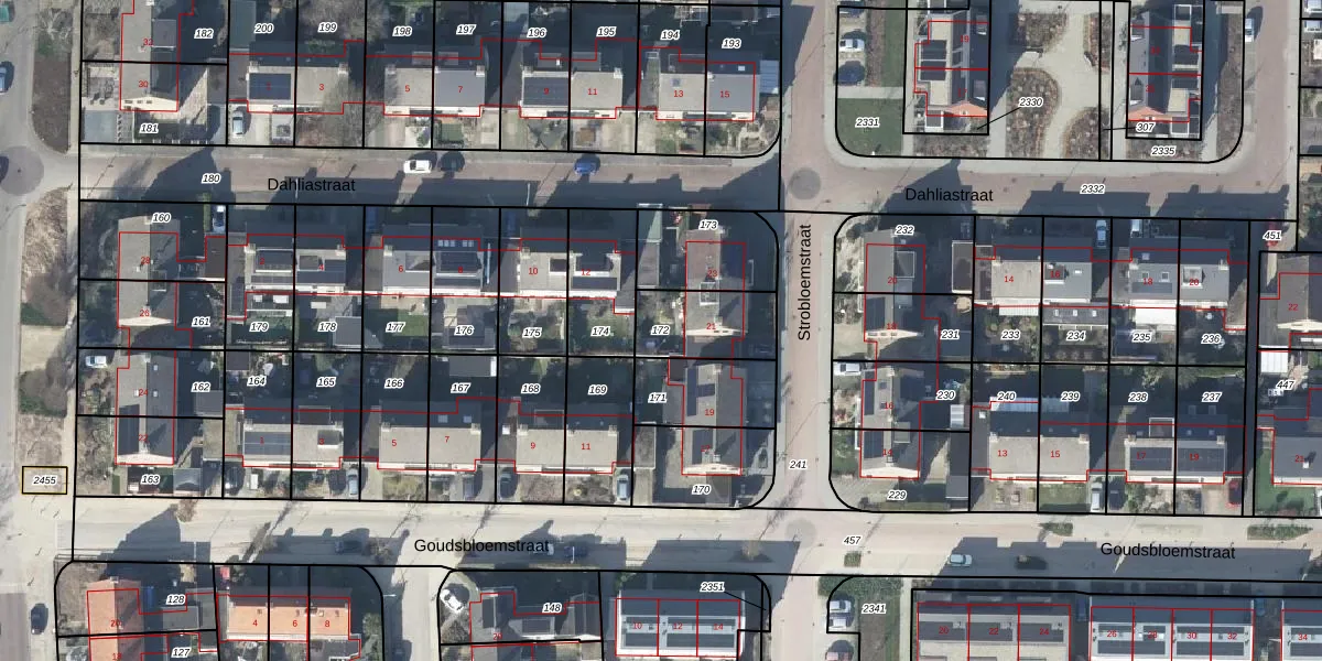 Gebruik de zoekbalk of klik op een perceel om informatie over het perceel te bekijken.