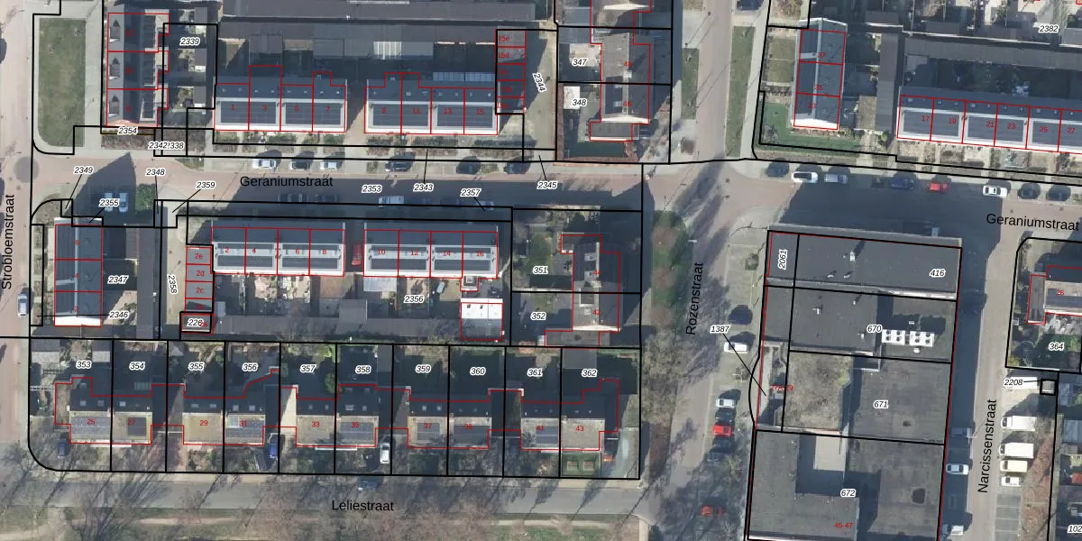Gebruik de zoekbalk of klik op een perceel om informatie over het perceel te bekijken.