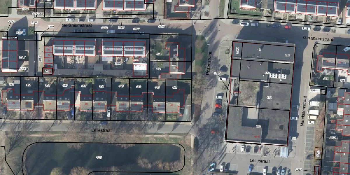 Gebruik de zoekbalk of klik op een perceel om informatie over het perceel te bekijken.