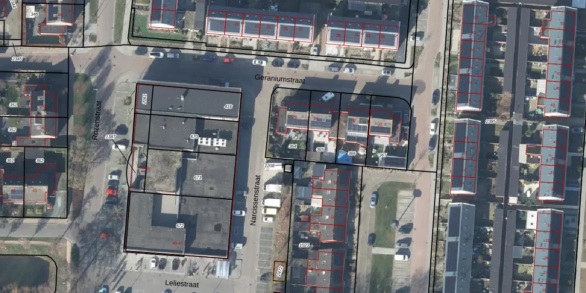 Gebruik de zoekbalk of klik op een perceel om informatie over het perceel te bekijken.