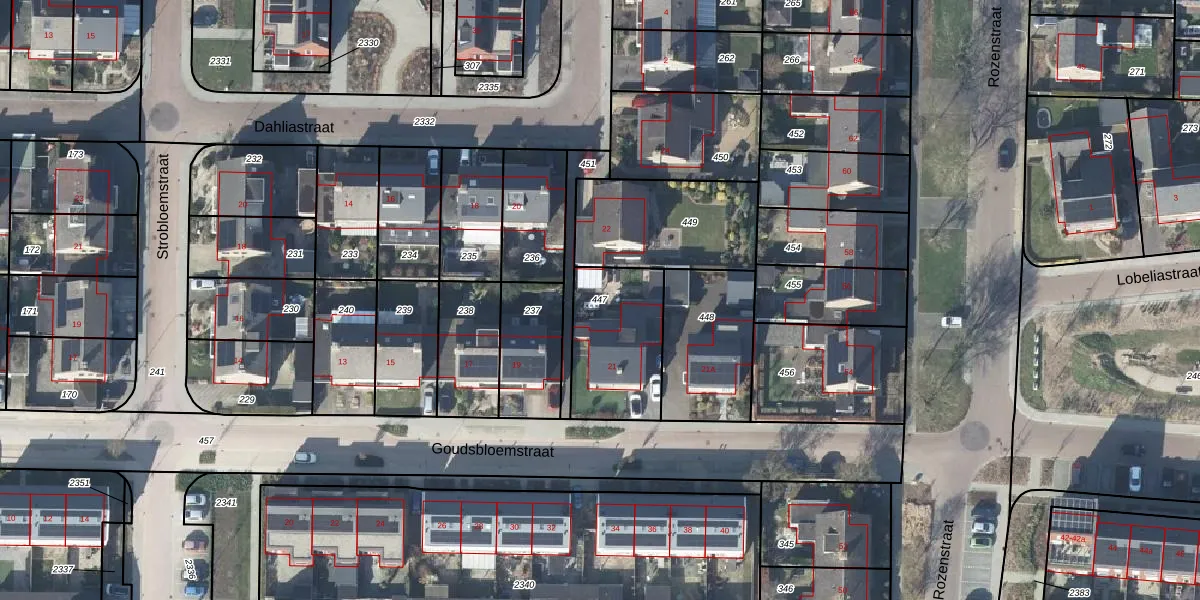 Gebruik de zoekbalk of klik op een perceel om informatie over het perceel te bekijken.