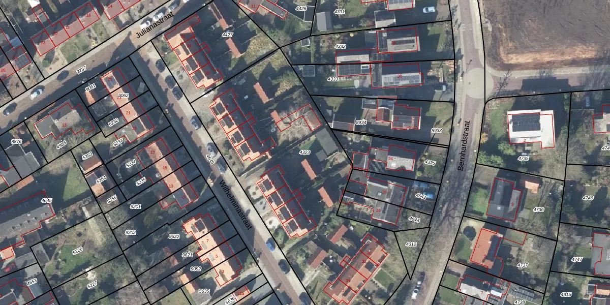 Gebruik de zoekbalk of klik op een perceel om informatie over het perceel te bekijken.